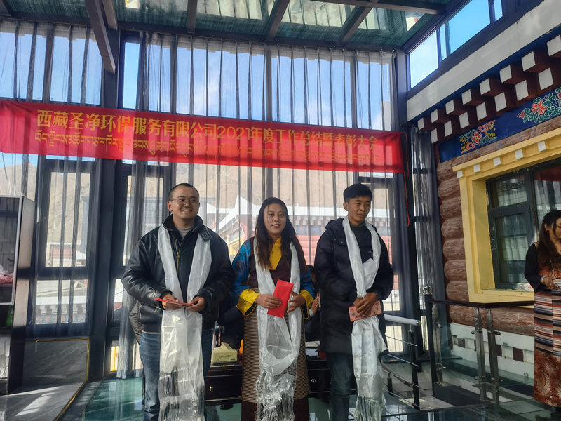 2022年2月25日11:00分,西藏圣凈環(huán)保服務(wù)有限公司在總公司二樓辦公室召開(kāi)2021年度總結(jié)暨表彰大會(huì)。董事長(zhǎng)達(dá)瓦、股東拉巴次仁、副總經(jīng)理次仁、副總經(jīng)理尼瑪次仁、綜合辦公室主任旦真多吉及各地分公司負(fù)責(zé)人、各部門負(fù)責(zé)人、優(yōu)秀員工代表和總公司全體員工出席會(huì)議。